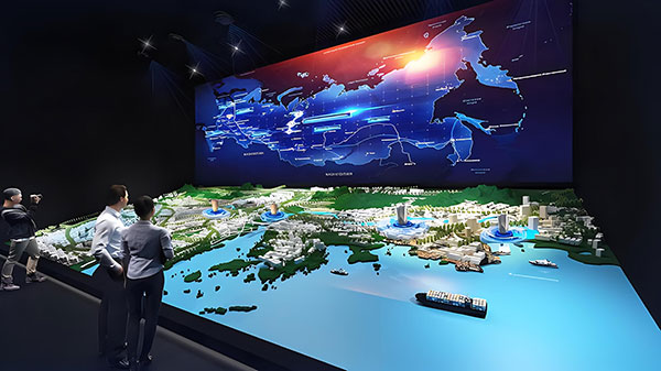 數字沙盤是一種將傳統沙盤模型與現代多媒體技術相結合的展示方式。通過使用聲光、投影、三維動畫等多種技術手段,數字沙盤能夠實現動態的信息展示,使得展示內容更加豐富多樣,同時也增加了與觀眾的互動性。